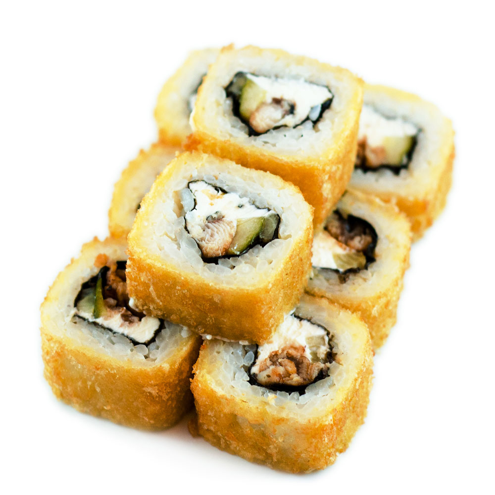 Рис, кляр, сухари "Панко", сыр "Филадельфия", жареный угорь, огурец Вес: 250 грамм