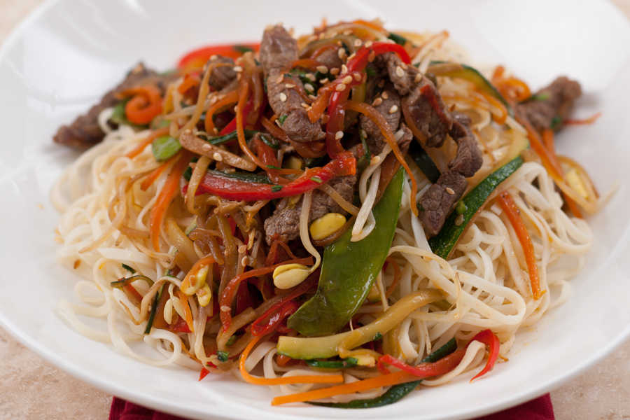 Состав: Рисовая лапша с говядиной, фасоль,кунжут,лук зелен, соус на выбор кисло-сладкий, терияки, унаги, кимчи. Вес - 350 г
