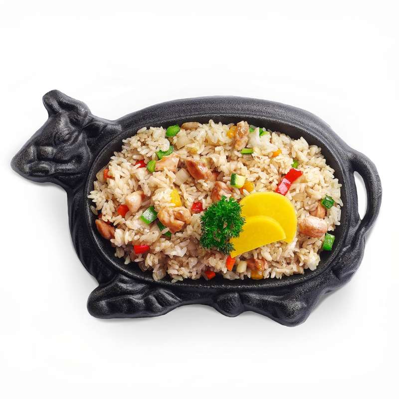 Состав: Рис отварной, куриное бедро, паприка, морковь, фасоль, чеснок, соевый соус. Вес - 370г